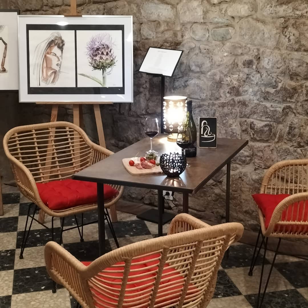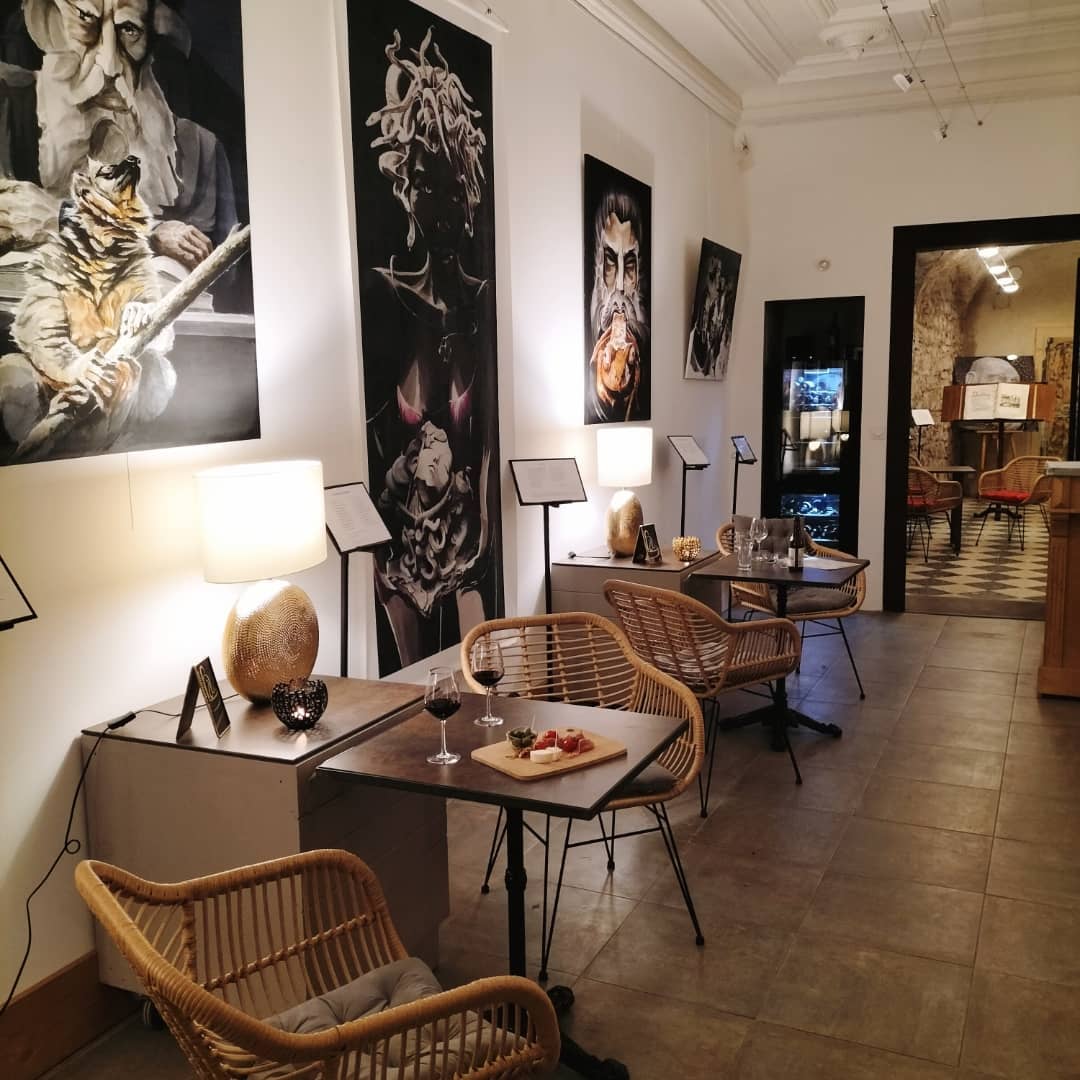 La Fontaine est un Bar à Vin esprit galerie d'art, Salon de Thé, caveau de vente, tout à découvrir dans un lieu historique. Un mariage entre patrimoine, art, œnologie et bien-être.